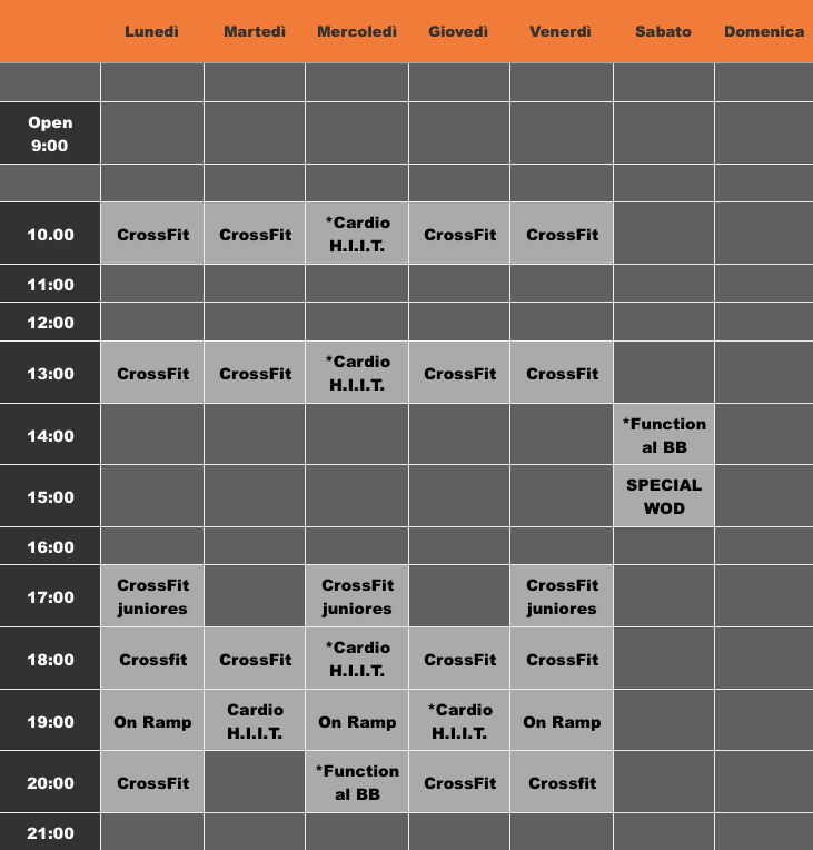 *I corsi di Cardio H.I.I.T. e Functional Body Building sono a numero chiuso e richiedono la prenotazione tramite l’apposita APP.